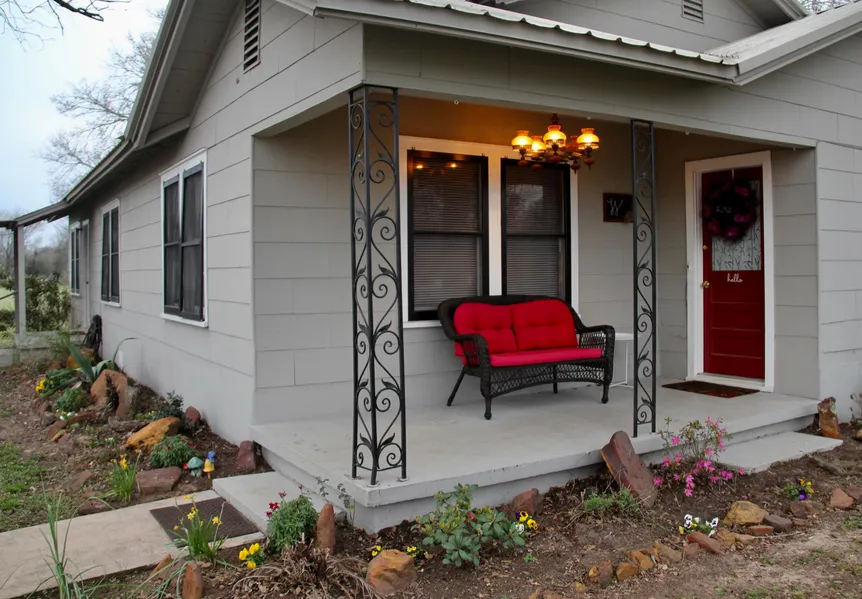 It sits on a sizable city lot, features a large side yard shaded with huge oak trees and has the perfect front porch for sitting and watching the world go by!