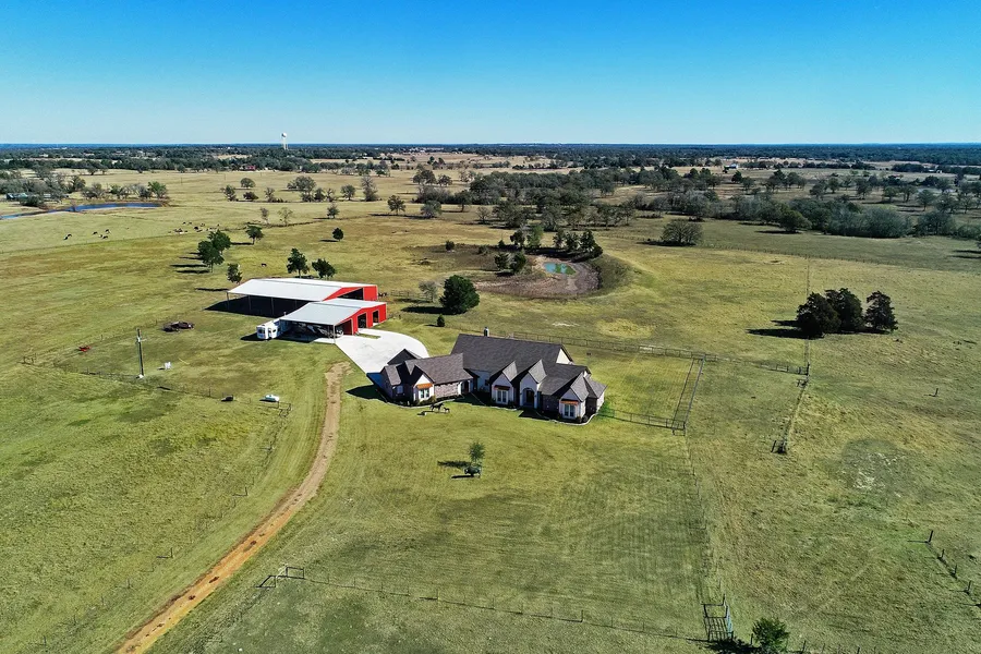 Spectacular country property on 50 acres in the charming town of Giddings, Texas. The gorgeous 4000 sf custom home was built in 2018 and features an open floor plan, spacious living, 14' coffered ceilings, porcelain tile floors, huge ceiling fans, & a stone fireplace. The chef's kitchen has a large island, granite countertops, Viking appliances, SubZero refrigerator, bar height and counter height around the island for entertaining and extra seating. The dining room is open to the kitchen and has a wet bar and plenty of storage with custom built-ins. The master suite has a fireplace, two walk-in closets, spacious walk-in shower, large jetted tub, and separate vanities. One closet could be an exercise room. The large screened-in porch has an outdoor kitchen, sink, and space for beverage cooler for entertaining. Horse lovers will fall in love with the covered arena and large barn with ho...