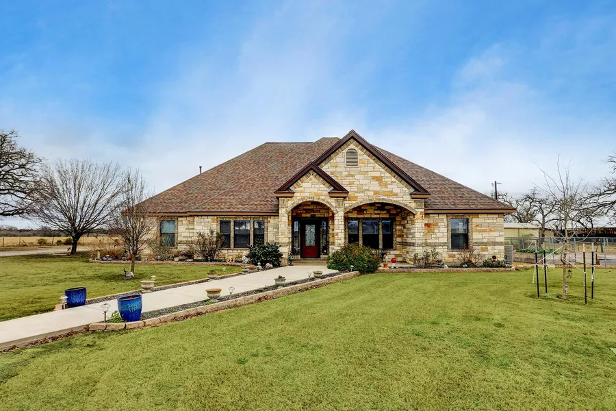 Country living on 5 acres not too far from the city. This gorgeous 3285 sf. custom one story home boasts 3 bedrooms, 2 1/2 baths, situated on a quiet road. Spacious foyer with study off entry with glass french doors. Beautiful master bedroom with high ceilings and access to the pool and luxurious master bath with large walk-in closet. Other features include, impressive formal dining room with coffered ceiling, kitchen w/ island and breakfast room open to family room. The family room is highlighted by a stone fireplace and view to the pool. The game room with wet bar and built-ins is a great space for entertaining. Enjoy midnight swims in the sparkling pool or soak in the separate hot tub. Property is fenced for horses with two horse stalls, 30x45 RV metal bldg. and storage shed. Enjoy growing your own vegetables in the raised beds and greenhouse. This well maintained home has it...