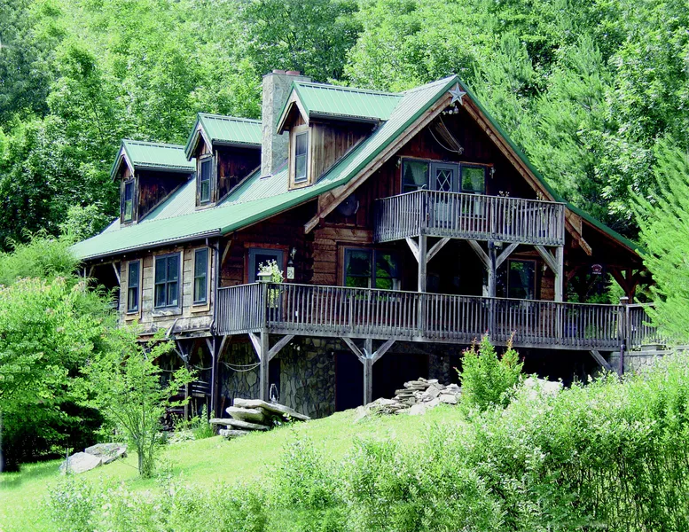 DESCRIPTION: Gathering Room (Natural Stone Fireplace, Cathedral Ceilings, All Woods, Hardwood Floors), Kitchen (Equipped, Wormy Chestnut Cabinets), Dining Room, Den (Wood Burning Stove),