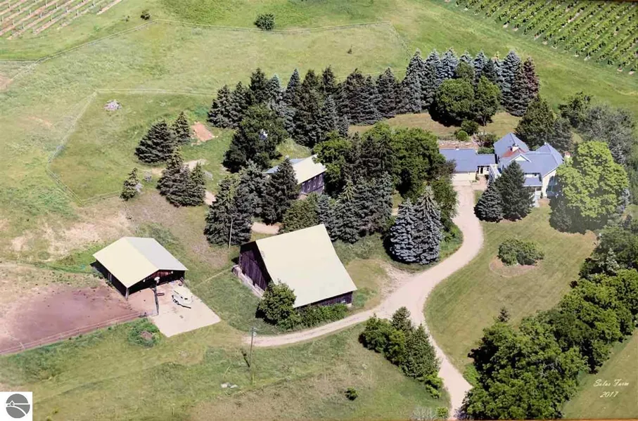 Iconic 11 acres in Leelanau County where people knew it years ago as part of the Dean A. Robb farm. The history continues with this being the birthplace of Admiral Willard John Smith U.S. Coast Guard Commander. This gorgeous property borders the 45 North Vineyard and Winery. All tucked away perfectly, the property consists of a main farmhouse, an original Granary that has been beautifully remodeled as a 2nd residence, another studio residence with a bath and kitchenette , a classic turn-of-the-century 2-story barn, multiple outbuildings including a workshop, 3 sided barn and thoughtfully remodeled art studio. Approximately 8 acres with electric fence (horses) and hidden fence (dogs). 3-tiered garden area behind the home with a stone patio and arbor. A creek runs along the front of the property at E. Duck Lake Road. Inside you'll find the classic farmhouse kitchen but elevated with a Viking stove and Sub-Zero refrigerator. Both the farmhouse and granary have saunas. Bring your love for Leelanau County and your imagination for so many possibilities! The accuracy of all information, regardless of source, is not guaranteed or warranted. All information should be independently verified.