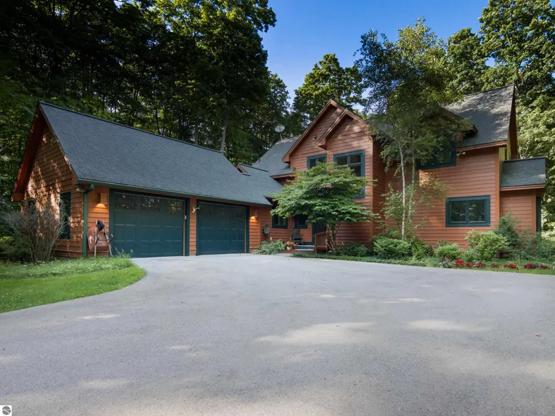 Stunning Cedar home in the heart of Leelanau County, this home features a private setting on nearly 13 acres. Nothing says up north more than this home featuring soaring 25 foot cathedral ceilings, natural stone fireplace and steamed beech floors. Main floor living; with primary suite just off the living room, large kitchen set up for easy entertaining, 17x17 screened porch, covered decks and main floor laundry with plenty of storage. The upstairs features two large bedrooms (on currently being used as art studio) and full bath. The lower level walkout has a large family room, bedroom, home office, exercise room, ¾ bath and plenty of room for storage. Quality build and impeccably maintained this home is a rare opportunity to be near the amenities of Leelanau; Empire beaches, Sleeping Bear Dunes, Glen Arbor and 20 minutes to Traverse City. All measurements are approximate and should be ve...