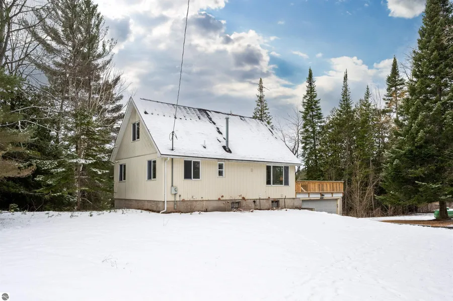 A Private Riverfront Retreat in the Heart of Leelanau County Nestled among the towering pines of Leelanau County and just 15 minutes from vibrant downtown Traverse City, this enchanting 18.41-acre property blends chalet-style charm with the serene beauty of Northern Michigan. Perched above the winding Cedar Run‹”home to thriving brown, rainbow, and brook trout‹”this 3-bedroom, 1.5-bath retreat boasts 1,940 feet of private riverfront, a tranquil pond, and scenic walking trails through majestic hardwoods and evergreens. A spacious deck and a heated, screened-in porch invite you to soak in breathtaking views year-round. Inside, soaring timber-lined ceilings and a vintage wood-burning fireplace create a warm, nostalgic atmosphere. The open-concept kitchen, dining, and living area offers generous space for gathering, while the lower level‹”featuring daylight windows, a wood stove, a laundry room, and ample storage‹”holds exciting potential for customization. Beyond the home, nature's beauty unfolds. A weeping willow, birch trees, and pines frame the established garden, leading to the private spring fed pond and a 24x20 pole barn with a workbench and abundant storage for tools, outdoor gear, or creative projects. Evergreens line the driveway, ensuring privacy, yet charming villages, scenic beaches, and endless outdoor adventures are just a short drive away. Whether you dream of peaceful mornings by the river, afternoons exploring Leelanau's hidden gems, or evenings gathered around the fire, this exceptional property offers an unmatched opportunity to embrace the magic of Northern Michigan. Don't miss this rare retreat‹”schedule your showing today!