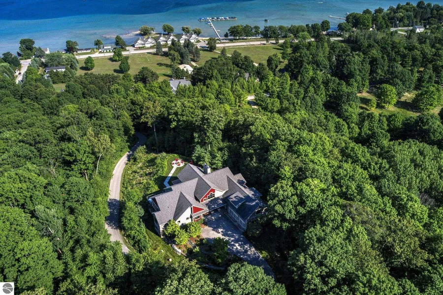 This is not just a house—it’s a place meant to be lived in, celebrated, and shared. Perched on a ridge with panoramic views of West Grand Traverse Bay, this 7,784 sq ft custom home offers exceptional craftsmanship, modern functionality, and space for meaningful connection. Located in the private Bay View Pines community between Traverse City and Suttons Bay, it blends privacy and convenience in one of Leelanau County’s most desirable settings. Inside, rich woodwork, custom wood beams, and a floating staircase reflect high-level design. The great room features vaulted ceilings, a floor-to-ceiling stone gas-assist fireplace, and dramatic windows that frame the bay. The entertainer’s wet bar with fridge and ice maker flows into the chef’s kitchen, complete with premium appliances, a prep island, and butler’s pantry with its own sink, dishwasher, and ovens. A dumbwaiter connects to the lower...