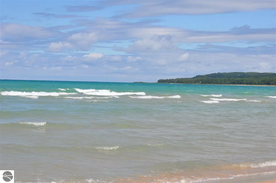 Beautiful Lake Michigan waterfront lot with views of Manitou passage from Pyramid Point past Fox Island. Wooded lot 450 feet deep totals 1.33 acres. Low bluff with stair access to 140 feet of frontage. Deep sand beach in years with lower water level. Year round sunsets and waves. Property is accessed by well-maintained private drive, 1/3 mile off N. Manitou Trail. No road noise. In 2015, the DEQ authorized a permit for the construction of a three story 3,000 sq. ft. house with two-car detached garage and an additional 1125 sq. ft. carriage house. Architectural plans available.