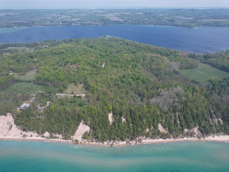 Located less than a mile north of the picturesque village of Leland sits this unique property along the bluffs of Lake Michigan. Untouched virgin forest along Lake Michigans shoreline lined with Birch trees, mixed hardwoods and open fields. Jaw dropping panoramic viewpoints capturing amazing sunsets and stunning views of the Manitou Islands as well as South Fox Island. The South side of the property borders a large land trust. Approximately 680 of shoreline with 21 acres, 3 deeded parcels (sites 2,3,4 on survey) of various sizes, opens this site to some development possibilities. Other uses might include a vineyard or gentlemans farm. Family owned for a generation, this is a first time offering of such a dramatic piece of property. Seller will entertain offers for one of the three individual sites, subject to government approval. Site 2 - $600,000 Site 3 - $699,000 - Site 4 - $1,575,000....