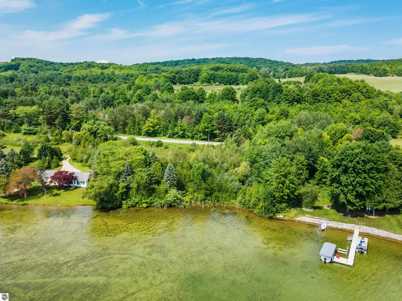 Discover your dream of lakefront living on Lake Leelanau with this exceptional property boasting 203 feet of frontage. Nestled on 1.4 acres, this double lot offers ample space to create your ideal retreat. POSITIONED JUST 40 FEET FROM THE LAKE ON THE APPROVED MDEQ BUILDING SITE, THIS PRIME LOCATION FOR YOUR FUTURE HOME promises breathtaking views and easy access to the water. A gravel drive leads to the building site, where plans did include a proposed 3 car garage and attached 3 bed 2 bath 2-story home. The plans also featured a wrap-around porch that would offer sunrise views from the front, and sunset vistas from a back patio, inviting you to savor every moment of lakeside living. Enjoy the tranquility of the wooded lowland, providing a natural barrier to road noise. Located near Lake Leelanau, Sleeping Bear National Lakeshore, and Traverse City. The possibilities for outdoor recreat...