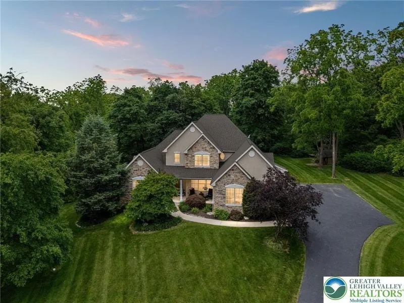 Experience comfort and style in this expansive FOUR bedroom FOUR and a half bathroom home, boasting over 3883 above grade sq ft of finished living space. The OPEN FAMILY ROOM and EAT in CHEFS kitchen with WALK IN PANTRY are perfect for entertaining and busy families. Included on the first floor is a separate SITTING ROOM/ MUSIC ROOM with built-ins, a MUDROOM and HALF BATH. The FIRST FLOOR PRIMARY is a serene retreat with views to PRIVATE BACK YARD and an en-suite bathroom with vanity and a spacious walk-in closet. Upstairs are TWO BEDROOMS with ATTACHED BATHS and walk in closets and a THIRD OVER SIZED bedroom. The BASEMENT with high ceilings offers a large REC space that's perfect for media nights or family gatherings. A DEDICATED OFFICE with built ins for working at home. Separate room art or Lego kids' zone sparks creativity. A versatile flex room can be adapted to suit your needs, and a FULL BATH ensures convenience. And with PLENTY OF STORAGE, this basement is both functional and spacious. Step outside to your own backyard oasis, complete with a Trex patio that's perfect for dining al fresco or enjoying the tranquil surroundings. And with SPACE FOR A POOL, the possibilities are endless. Nestled in an exclusive development at the end of a cul-de-sac, this home sits on 2.4 ACRES , offering seclusion and breathtaking views. And, as a bonus, there are NO HOA fees! With its luxurious living and countryside serenity, this home has something for every generation.
