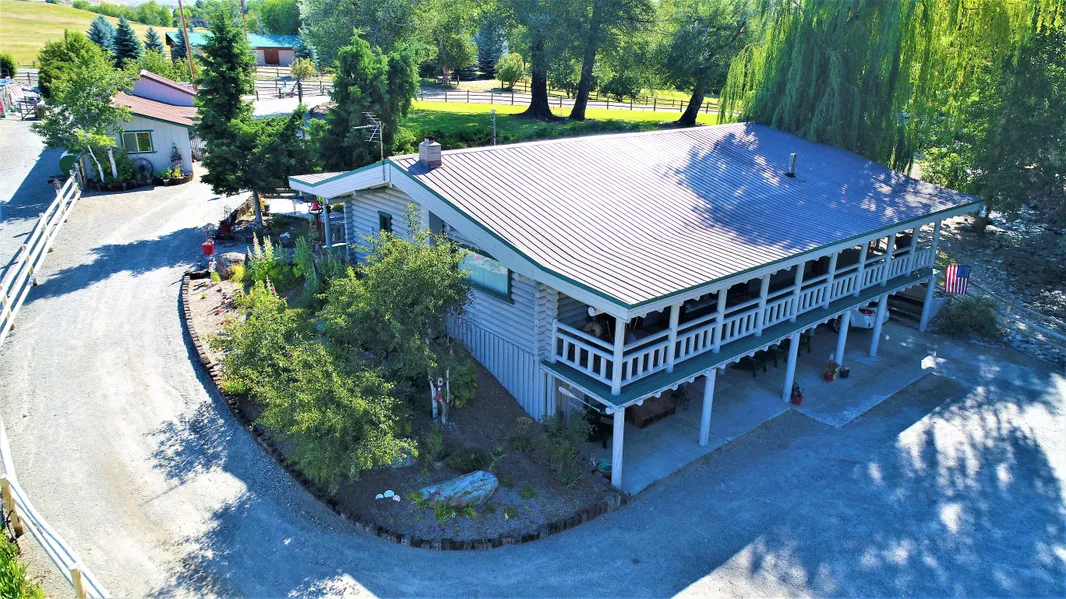 Tranquility & Luxury, this custom log home has 2,860 sq ft with three bedrooms & two baths and is nestled on 4.9 acres surrounded by panoramic views and magical sounds of the Lemhi River and Wimpey Creek. On the main level is a great room with vaulted ceilings, river rock hearth, Vermont casting wood stove, spacious dining area, kitchen with lots of storage and breakfast bar, master bedroom and bath. All rooms open onto the over-sized covered porches overlooking the running creek. The lower level reached by a fun spiral staircase is a walk-out basement, family room, wood stove, two guest rooms, bath, laundry and cold storage room. Just outside the log cabin near the two orchards and veggie garden you will find three private cabins with covered porches and water views, the largest of the three cabins has a kitchen and 3/4 bath, the two small cabins do not have bathrooms, but they are a bi...