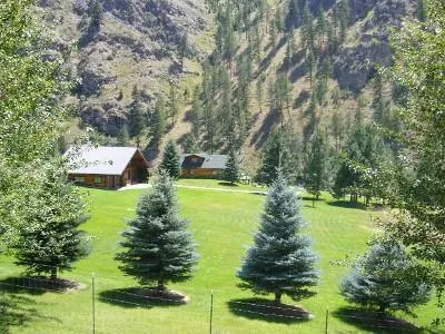 This is a one of a kind gorgeous and unique property located in the wild and scenic rivers corridor. This beautiful 3 bedroom, 2 1/2 bath log home features newly remodeled kitchen with custom built hickory cupboards, living room, dining room, bedroom, bath and laundry room on main floor, plus wrap around deck overlooking the beautiful Salmon River. Upstairs is the master suite and bath with deck overlooking the Salmon River. Daylight basement has bedroom, bath, family room, plus walk-in cooler. 3,100 sq. ft. Beautiful landscaping, flowers, pine trees, fruit trees, circular drive, garden spot and boat dock. This is such a unique spot in the mountains and backed up to the Salmon River with lots of wild game and great steelhead fishing. The huge 4-5 car garage/shop is every mans dream. Home and shop has solar power plus generators for back-up!! Fully fenced, irrigated acres, water r...