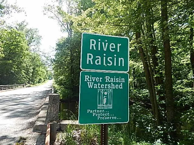 All woods and on the Raisin River located just a few minutes south of Tecumseh and on a paved road.