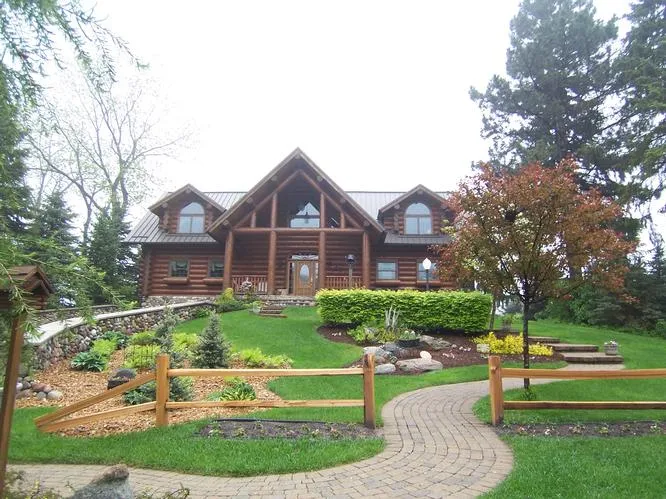 Iron Lake Estate with 240' of lakefront! 3 story Log home completely custom through out! Natural stone, metal roof, full ceramic baths, glass doors, patio anddecks. Master suite with attached sun room and Jacuzzi bay, formal dining room, great room, family room, 2nd sun room, and billiard room. Top gradefinishes including granite, copper, brass, and cedar. Meticulous lush landscape includes boulders, statues, countless shrubs, flowers, & a 150ft water gardencomplete with waterfall.