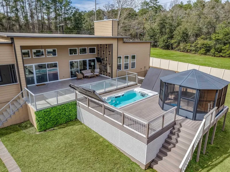 Stunning 1-story modern villa in A-Rated School Zones. Privacy gate & fully fenced yard. Enjoy soaking in the above ground pool spa encompassed by a large composite deck & gazebo. Looking for natural light & floor to ceiling windows that shine into the main living room & dining, 20 ft ceilings, open floor plan, upgraded appliances includes a wine cooler & wall oven. Whole house GENERATOR included. Additional fenced in lot closest to Bradfordville conveys. Dedicated laundry room & tech closet for internet/cable. Each bedroom has its own dedicated bathroom plus a guest bathroom. The screened in outdoor kitchen is perfect for a master chef. 3-car over sized garage & tons of storage. Well maintained home like new construction! MUST SEE!
