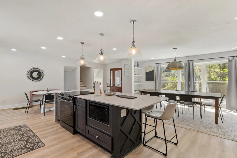 Unicorn find: Betton Hills 5Bd/4.5Ba pool home renovated from top to bottom, inside & out in 2022 // Turn key Airbnb that may be sold completely furnished, including furniture, decor, linens and kitchenware // Well-designed finishes include all new cabinets, flooring, windows, counters, fixtures, driveway, paint, doors, hardware, drywall and so much more // Room for everyone and every hobby in this roomy floor plan that includes a massive kitchen and dining area that can be flexed as a third living space // Impressive kitchen has huge island, built-in pantry, wine cooler, top-of-the-line appliances, as well as side breakfast space in addition to large dining area // Two separate living spaces, one with a wood burning fireplace and the other with tall ceilings overlooking the front yard // Primary suite has its own level with high-end updates to bathroom and a massive closet space that can double as an office or nursery // Four bedrooms and two full bathrooms on one level keep the play and rest areas conveniently separated // Recently resurfaced pool and surrounding patio overlook pool house has a cabana bath with covered lounging and storage area // Enjoy walking a short stroll on the sidewalk down the street to McCord Park and pond, as well as biking on the soon-to-be-installed bike path all the way from Midtown to The Market District // May also be sold completely furnished