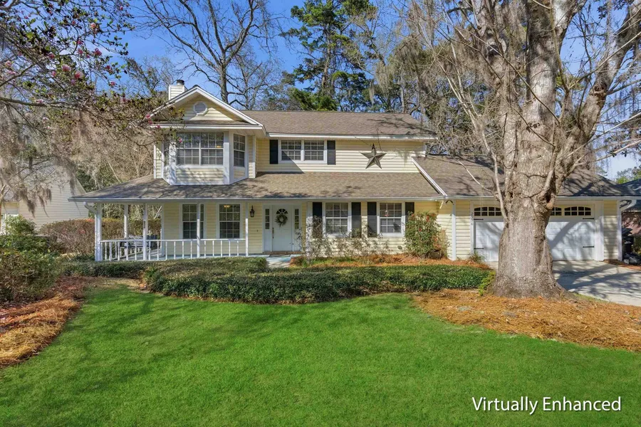 (One or more photos is virtually staged/enhanced) *Beautiful 4BR + office, 2.5BA home in desirable NE Tallahassee on a private, fully fenced lot with NO HOA. A welcoming front porch leads to a traditional floor plan featuring a formal living room with wood-burning fireplace, private office/library, separate dining room, and a bright sunroom off the kitchen. All four bedrooms are upstairs with hardwood flooring throughout. The chef's kitchen offers Corian countertops, butcher block island, pantry, stainless appliances, and a double oven with warming drawer. Enjoy outdoor living with the spacious screened porch and brick patio overlooking professionally landscaped grounds with year-round blooms, fire pit area, water feature, and outdoor hot shower. Additional features include French doors, termite bond, and security system.