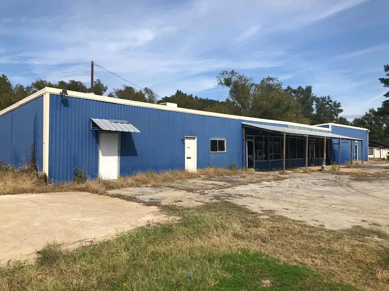 2.999 Acres located on the corner of HWY 79 and N Oliver St. at the edge of Oakwood. This property has over 400 feet of HWY 79 frontage. The metal building is an approximate 25' x 135'. It is sectioned off into several rooms including, kitchens, bathrooms, large open display rooms, and an efficiency style managers suite or office. Some walls are freestanding and can easily be re-constructed if preferred. Selling "As Is". Corner lot with 2.99 acres, metal building, parking lot, and a small pond.