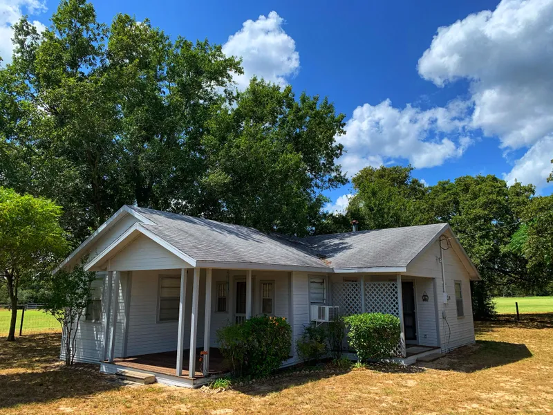 Farmhouse in the country!!! 61.56 acres that is half wooded and half improved Coastal Bermuda pasture. This land is very productive and has been used for a small cow/calf operation for the last several years. Owners have worked hard to improve this little ranch into what it is today. Perimeter is completely fenced and there are two cross fences. All the fences are in excellent condition. Improvements include a very nice and cozy farmhouse that offers 2 bedrooms and 1 bath, full kitchen, and a nice sized living room. Storage barn with lean to shed beside the house. Barn and pens are behind the house. There is a new 30x60 hay barn in the front hay meadow. Two nice ponds on this place and one of them is supplementaly fed by a water line from one of the 2 water wells (solar pump). Both ponds are stocked with fish. The back half of this place is wooded and there are deer blinds in...