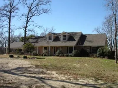 Beautiful spacious ranch-style home only 2 miles from town! 2689 sq. ft. 4 bedroom, 2 bath brick home of steel construction, with ca/h, vaulted ceiling in den with fireplace, window seat in living room, lots of cabinets, matching 2-car carport joins utility room with office space, screened-in back porch and open front porch. Home sits on 20 park-like acres on wooded hill overlooking beautiful pasture valley with creek, $347,000. Can also be bought on 5 acres for $274,950.