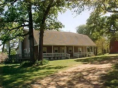 Gorgeous 6 bedroom, 3.5 bath 2-story farm-style house on 9.77 park-like acres. Land is completely fenced with a stocked lake. Also on property are a 3-car garage, 40'x60' metal barn on slab, deep water well, and community water. House has many extras -- 3450 sq. ft. living area, 24' ceilings in family room with woodburning stove, built-in red oak entertainment center, knotty oak kitchen cabinets, large pantry, new paint throughout interior of home, new wood laminate flooring in kitchen and breakfast area, plus much more. MUST SEE!! $325,000.