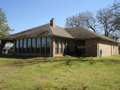 Beautiful French country-style custom brick home with 2800 sq. ft. of living area, huge covered porch, and an oversized 2-car garage. In addition, there is a nice 25'x40' metal shop on a slab, swimming pool, plus many other improvements. The land consists of 80 acres of hills, woods, and a manicured coastal hay field with 2 gorgeous crystal clear spring-fed ponds that are packed full of crappie and catfish. The property is completely fenced and is in a very desirable location within 30 minutes to the Bryan/College Station area. Offered at $524,900.