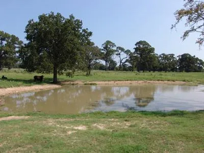 Leon Co. - 50 acres with hay meadow and pasture land and lots of improvements. Over 900’ of paved frontage on FM-579. 420’ deep water well (per Seller), central heat & air, telephone, and a septic tank service an open concept 960’ SF efficiency apartment with a full bathroom and open kitchen/living area. Two ponds, branch creek, good fencing & cross fencing, and plenty of room for horse & cattle operations. Scattered hardwoods balance open pasture. Great place for weekends in the country! $280,000
