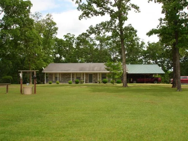 16.2 beautifully manicured acres of woods and pasture. Land is fenced and crossfenced. 1728 sq. ft. gray brick veneer home with fireplace. 24'x37' 3-car carport plus several nice sheds. $194,950.