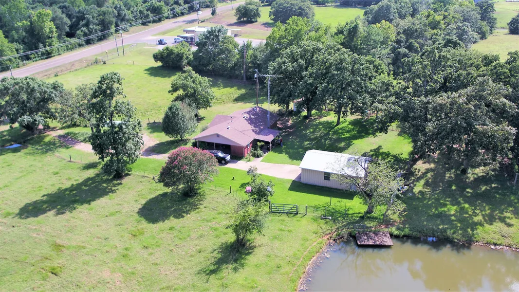 Centerville, Leon County: Commercial and/or Residential 3/2/1 Neat Brick Home built in 1960 with 1576 SF (CAD). Property features include long driveway, sturdy 1420 SF workshop (CAD), beautiful pond, fence, stock pens, outbuildings, and large scattered hardwoods on a rolling terrain. This property has paved Hwy 7 frontage and is close to I-45 for easy travel access. Currently used for cattle production, this property offers unlimited opportunities. MLS# 29890757
