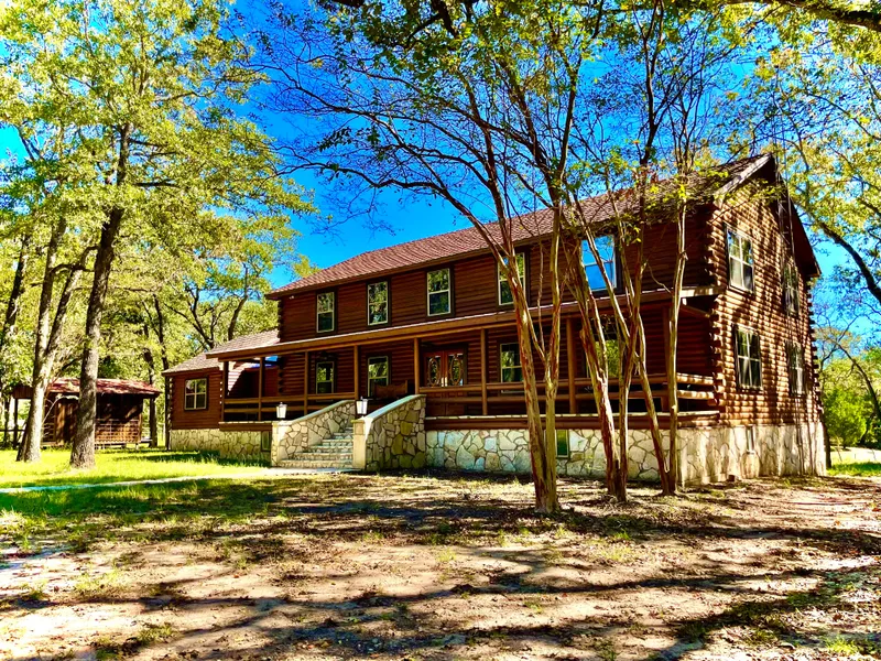 The SAW Ranch features a Dream Two Story, 6 BED, Log Lodge overlooking a lake that is perfect for entertainment.