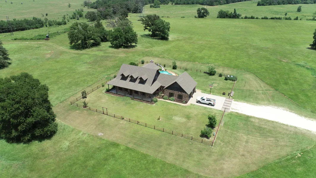 Must see this beautiful custom built 2 story country home on 84 rolling acres. Home is spacious with 2720 +/- sq ft that includes 4 bedrooms and 2.5 bathrooms. Downstairs has a spacious family room with woodburning fireplace. Large kitchen with an eat at bar, both informal and formal dining spaces. Primary bedroom downstairs with ensuite bathroom featuring double vanities, jetted tub, separate walk-in shower, and his/hers separate walk-in closets. Guest bedroom and 1/2 bath downstairs off the foyer entrance. Upstairs boasts nice-size game/bonus room, office area, two bedrooms and full bathroom. The yard is nicely landscaped and includes a great in-ground pool. Gorgeous rolling fields, two ponds, fenced, including a huge 100x80 barn with 3 rollup doors, 3/4 bath in barn and office/kitchen/sleeping area.