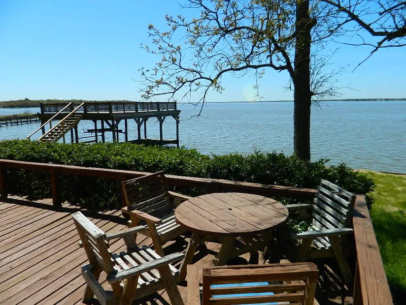 Quiet Getaway! Check out this 3/2 A-Frame cutie located in the Wharfwood Subdivision on 2 lots totaling .93 acres more or less. Convenient Bedroom Floor Plan with Master Bedroom and a bathroom downstairs, with 2 bedrooms and a bath upstairs. Sliding Glass Doors and tall windows face the lake giving you magnificent views of the open water and entrance onto the lakeside deck. The 2 lots are bulk headed and there is a pier and boathouse with a large sundeck. There is also a detached 2 car garage on slab with storage areas.