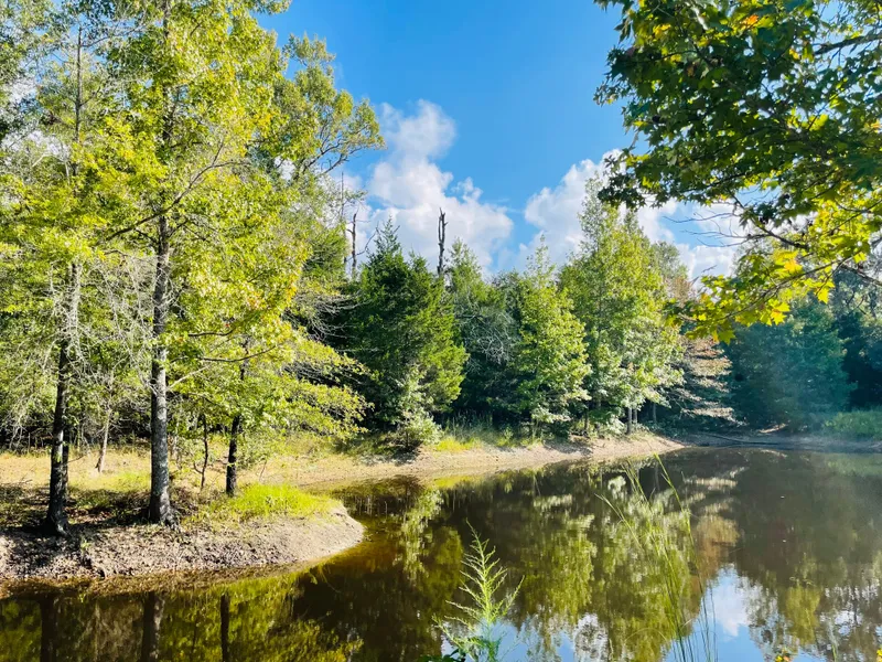 A Pond situated behind the home is half surrounded by trees with the water backing up into a creek making it a beautiful spot to fish and enjoy the view.