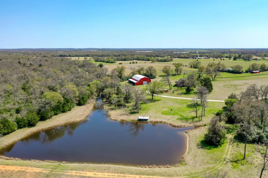 A hunter or wildlife enthusiast's paradise! This high-fenced, 173-acre ranch in Leon County is 60% wooded and is partitioned into 3 sections: 50 acres for exotic deer (blackbuck, axis, and fallow), 112 acres for whitetail deer, and 11 acres used for soft release/breeding pens. All the animal mounts you see in the photos were taken from this property! Right off the farm-to-market road, you'll be greeted by the wrought-iron high-fenced entrance into the ranch. This property has room for the whole family featuring a rustic 3-bedroom, 2.5 baths, two-story custom brick home. The master bedroom is downstairs and two bedrooms upstairs. There are additional living quarters in the big 50' x 90' red barn which features three bedrooms, one bathroom, and a game room. The front porch is the perfect place to grill, entertain or sit out and enjoy the view of a rolling coastal field, wildlife, and large trees. Grab the fishing poles and head over to the one-acre fishing lake stocked with bass and perch near the main house. The land features a smaller pond perfect for wildlife, is spring-fed, and never runs dry. The property also includes a 41' x 41' detached shop with a walk-in cooler, a meat processing facility, and additional storage. A smaller barn on the property features two horse stalls. These factors and the remote location offer the potential for developing a truly unique hunting, fishing, and recreational property that would be a family gem for generations to come. Call today for your private tour of this diverse property that offers an ideal escape into nature.