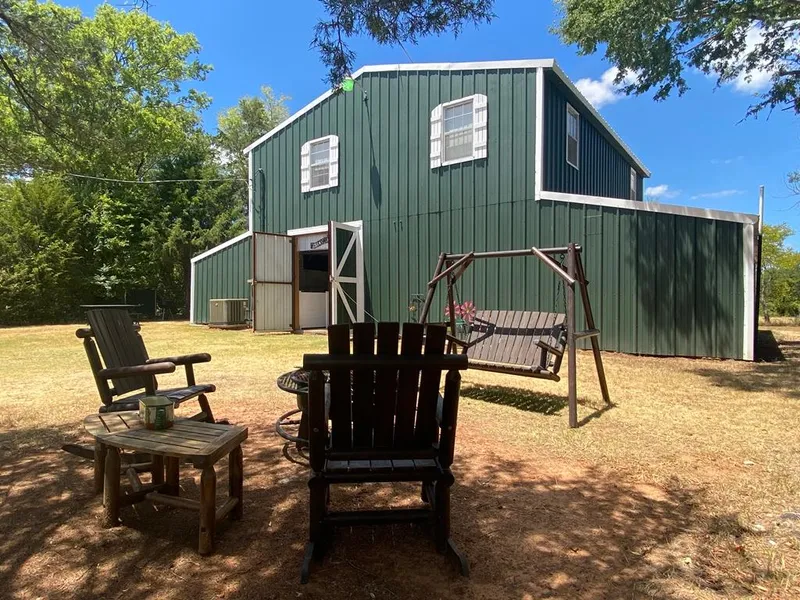 Wonderful retreat on 3.13 acres with a unique 2 bed 2 bath barndominium. Perfect for the family and friends to come relax at "THE BARN" or enjoy a trip to the 12,000 acre Lake Limestone for excellent fishing, boating, water sports, and most of all the memories made! The upstairs contains 1,152 sq ft. and nearly 2,000 sq feet of entertaining area downstairs. The living area is in nice condition with the favorable farm house accent. The entertaining downstairs has a partial kitchen, bathroom with an oversized farm house shower, plenty of open floor space for entertaining and or storage. Sit around the shade tree or campfire relaxing with friends and family. Deer, squirrels, and other wildlife are often seen hanging around the area as well. 50 amp RV hookup already in place and ready for use. The Barn is hooked to a community water line, although there is a shallow water well on the propert...