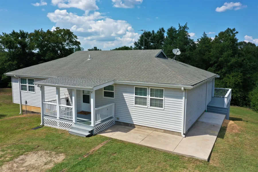 Seldom seen in our neck of the woods, this amazing home has a daylight basement that provides comfort and safety from inclement weather. Utilizing the natural slope of the rolling hills of the picturesque Buffalo countryside, the basement boasts a large bedroom, living rm, and bath with huge shower & washer, dryer connections plus a rear entry garage. Main level with all large rooms consists of 3 bedrooms, 2 baths, kitchen open to the breakfast nook, and living room with exterior door to the covered balcony that extends the full length of the home (patio underneath) providing the perfect place to enjoy nature. Neutral colors, recessed lighting, rounded drywall corners, arched doorways, very clean & like new throughout. Exterior with vinyl siding, composition roof, gutters. Property is wooded, creek, pipe fencing across the front with 24 x 40 metal shop with 10 side walls. Just 2 hours north of Houston.