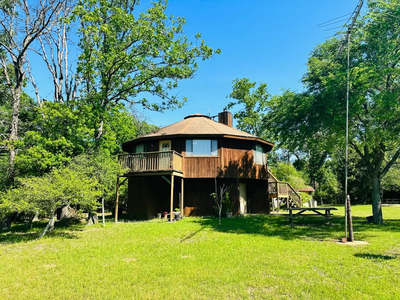 Buffalo TX 3 BED 3 BATH home on 40+/- AC - Here is your chance to get away from a traditional style home with a one of a kind Tree House style home. This unique house sits atop a hill overlooking a picture perfect view of 40 acres of land that has a great combination of woods and improved pasture. The home has the primary bedroom, bathroom, kitchen and living area all upstairs giving it the nickname of a treehouse style. There is a brand new HVAC and a wood burning stove thats able to heat the whole home if needed. The circular shape house has a spiral staircase that leads your up from the garage and guest bedroom up to the main living area that is truly one of a kind. Deer, Hogs and other wildlife are plentiful in the area as this property is boarded by plum creek ranch which consists of thousands of acres creating exceptional hunting and wildlife views. The pasture and pond provides the necessities to run cows and horses as well if desired. Great place that has a perfect set up to enjoy the country living.