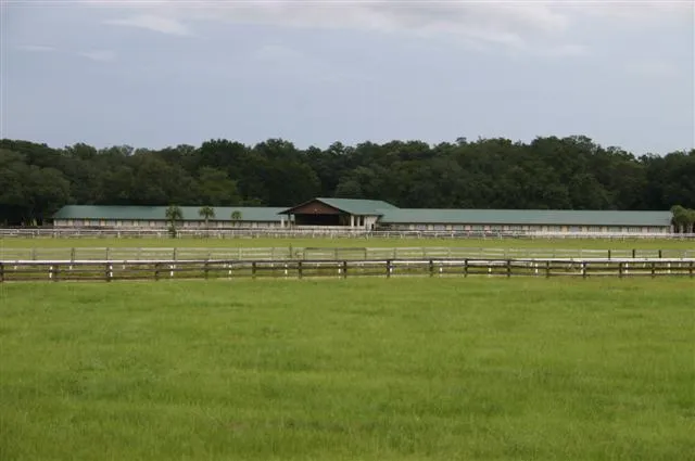 Working thoroughbred farm with 5/8 mile irrigated track. This farm has it all! Nice owners or managers 3/2 home, 3 barns with a total of 79 stalls, covered Eurocizer, hay barn, and maintenance building with office. The main barn has 56 stalls, 2 inside hot walkers, 2 feed and 2 tack rooms. The stallion barn has 4 large stalls, and the third barn has 19 stalls and a tack room. All this on 73.5 acres! Just move in and start training!