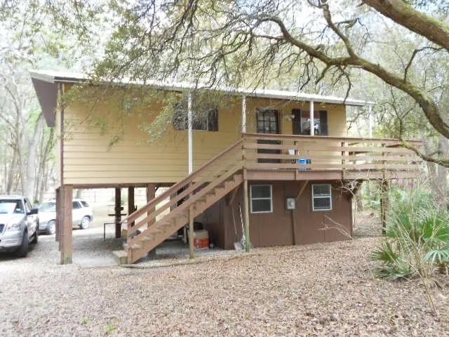 THE PERFECT GET-AWAY DESTINATION Quaint 2-story home is nestled amoungst the trees. Located in Fanning Springs near the world famous Suwannee River. Minutes away from pristine natural springs, boat launches, biking trails and wooded recreational areas. Cabin-like home has 2 bedrooms, 2 baths, open living area and open porch. Bonus 24x35 metal workshop that is large enough to accomodate a travel trailer or RV. Consisting of three separate lots, one lot has an additional septic and power pole. Great investment...see today!
