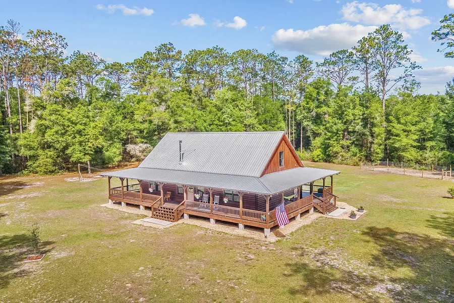 CUSTOM BUILT CYPRESS LOG HOME FOR SALE! Take a scenic drive down the private, gated driveway where you'll find 41 gorgeous acres of prime country land. This log home was built in 2017 and boasts over 2,000 sq ft, with 3 large bedrooms & 2 full bathrooms. The vaulted tongue & groove wood ceilings, stained concrete floors and a wood burning stove will surely be the topic of conversation with their intricate beauty. Beautiful, spacious kitchen with concrete countertops and a eat-in bar complete the inside of this home. Outside you'll enjoy relaxing on the huge wrap around porch soaking up all the peaceful scenery on the property. Behind the home is a 48x36 pole barn complete with electricity, a 50-amp RV hookup and so much more! Enjoy the abundance of wildlife on the property with numerous walking trails throughout. Call now to see this one for yourself!