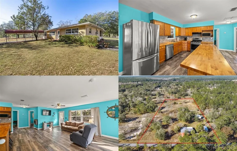Under contract-accepting backup offers. Discover the endless possibilities with this beautifully renovated home nestled on an expansive 4-acre property. The home offers an open kitchen concept perfect for gatherings, along with the convenience of an inside laundry room. The spacious screened-in lanai is ideal for enjoying the serene surroundings while adding even more functional living space. This home is designed to grow with you, featuring opportunities to expand and create an additional bedroom and bath, tailoring the space to your needs. The property includes a 30x40 garage and a 12x30 she shed with a new roof! The appliances, instant gas water heater, insulation, Roof, AC, septic, and gutters are all less than 4 years old! Move in with peace of mind and privacy. With its blend of renovations, room to customize, and the tranquility of 4 private acres, this property offers a rare chan...