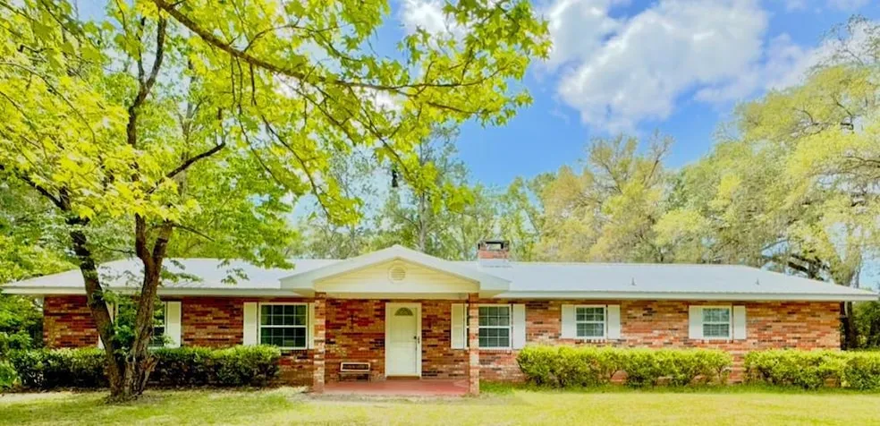 Welcome to this charming 4-bedroom, 3-bathroom brick ranch-style home nestled on over 2 picturesque acres in the peaceful rural setting of Levy County. Surrounded by hundreds of acres of farmland, this property offers the ultimate privacy and tranquility. The home features a metal roof, solid wood kitchen cabinets, and sleek stainless steel appliances, offering both style and function. Adjacent to the kitchen is a large pantry/laundry room. Beautiful wood-look tile flooring flows throughout the home, complementing its rustic charm. The spacious master suite includes a bonus room with pecky cypress walls perfect for a home office, a craft room, or easily converted into a 5th bedroom. The oversized great room, complete with a wood-burning fireplace insert, is ideal for cozy evenings with family or friends. Step out the French doors leading you to a large covered porch, perfect for dining...