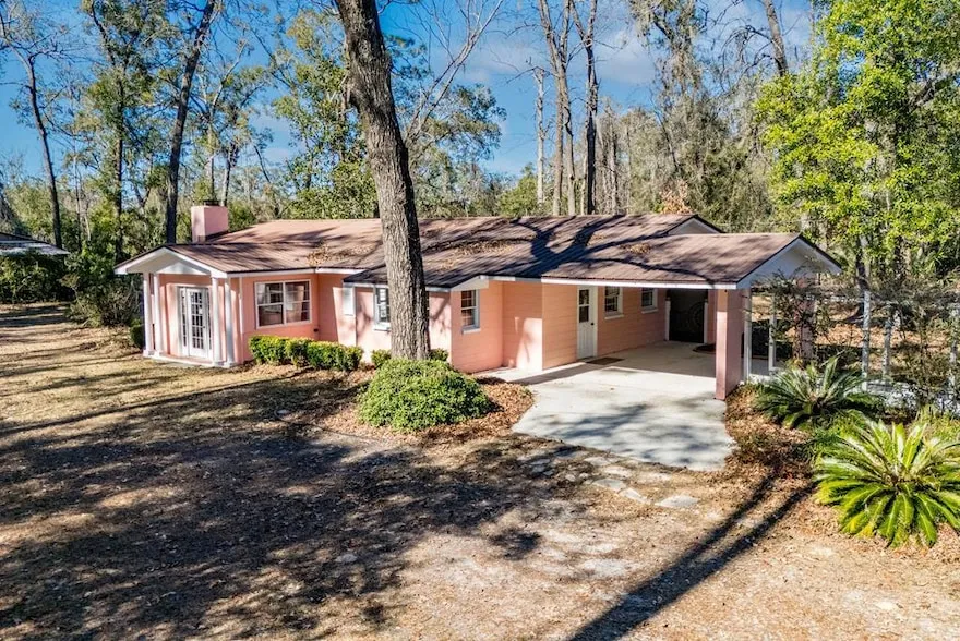 Beautiful property with TWO homes!! The first charming 2-bedroom, 2-bath home is nestled on a sprawling 5.9 acres, providing ample space for outdoor activities and privacy. The main house features a small Florida sun room, cozy living area, kitchen with plenty of space for cooking, a formal living room, and spacious bedrooms that are perfect for relaxing and entertaining. This property offers the unique possibility of converting one of the rooms into a third bedroom, allowing for flexibility to suit your needs. There is also a small room that can be used as an office or craft room. Additionally, there is a second dwelling on the property, a 2-bedroom, 1-bath house, ideal for guests, rental income, or extended family. You'll also find a large separate workshop with electricity, and a pole barn, and gazebo, making this property perfect for hobbyists, craftsmen, or those with plenty of equipment. Enjoy the tranquility of country living while still being close to local amenities