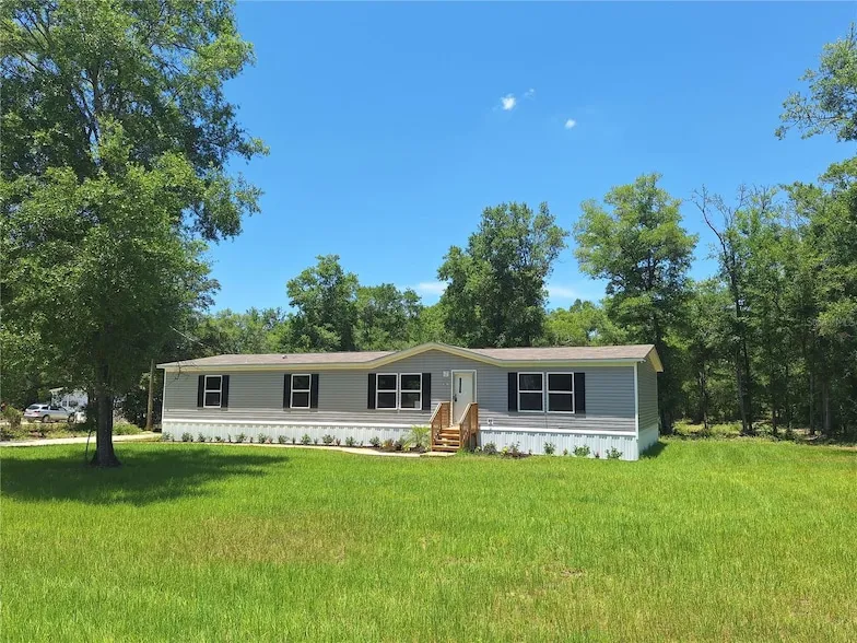 Under contract-accepting backup offers. WELCOME HOME!!! This BRAND NEW 4 bedroom home is just waiting for you! As you walk through the front door, you are greeted by a spacious, open floor plan that flows seamlessly from room to room. Two large great rooms offer flexibility for both design and living options. And you will love that there are great views of the outdoors from every room! The kitchen features plenty of counter space and the added bonus of a center island. Adjacent to the kitchen is a large utility/laundry room that also serves as a pantry for additional storage. The primary bedroom is extra spacious and boasts an ensuite bathroom and oversized walk-in closet. Three other bedrooms offer plenty of room for family and guests. Or perhaps use one of the bedrooms for a home office. Step through a sliding glass door to an oversized back yard that has been thoughtfully cleared while leaving some beautiful trees for shade and comfort. With so much space, there is plenty of room for a pool, garden, or even chickens! Located in a quiet neighborhood with no HOA or restrictions. Only 4 miles from Bronson and less than 30 minutes to Gainesville. The property has been beautifully landscaped and the yard is fully established. All of the hard work has been done here this home is MOVE IN READY AND WAITING FOR YOUR CUSTOM TOUCHES! Come take a look and get it before it s gone!