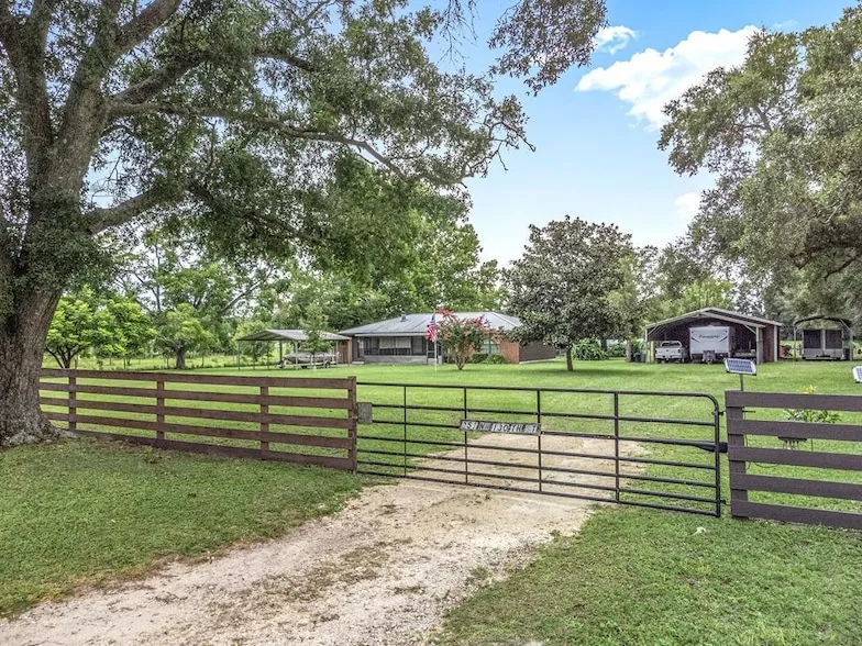 Welcome to this charming 2-bedroom, 1-bath home in the heart of Trenton, Florida. This well-maintained residence features a brand new AC system with a 10-year warranty for peace of mind. Enjoy the inviting screened-in front porch, perfect for relaxing, or step into the bright Florida room at the back of the home. Inside, the cozy living room offers a beautiful brick fireplace, creating a warm and welcoming atmosphere. The property boasts an impressive array of outbuildings and amenities, including a 30x50 enclosed garage with its own bathroom, a 24x28 attached carport, a dedicated RV carport, and an additional 20x20 carport for extra parking. There's also a greenhouse, chicken coop with irrigation, a 16x36 tractor wood barn, and a 24x24 garden shed with water and an almost finished den ideal for hobbies or extra storage. Set on a fenced and cross-fenced lot, this home offers plenty of sp...
