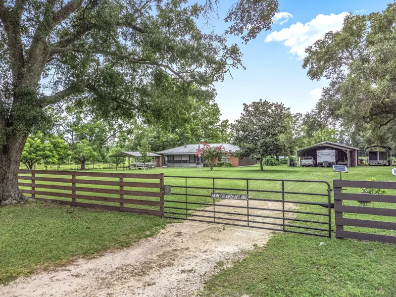 Welcome to this charming 2-bedroom, 1-bath home in the heart of Trenton, Florida. This well-maintained residence features a brand new AC system with a 10-year warranty for peace of mind. Enjoy the inviting screened-in front porch, perfect for relaxing, or step into the bright Florida room at the back of the home. Inside, the cozy living room offers a beautiful brick fireplace, creating a warm and welcoming atmosphere. The property boasts an impressive array of outbuildings and amenities, including a 30x50 enclosed garage with its own bathroom, a 24x28 attached carport, a dedicated RV carport, and an additional 20x20 carport for extra parking. Theres also a greenhouse, chicken coop with irrigation, a 16x36 tractor wood barn, and a 24x24 garden shed with water and an almost finished denideal for hobbies or extra storage. Set on a fenced and cross-fenced lot, this home offers plenty of space for gardening, animals, and outdoor enjoyment. Blueberries, mulberries, and blackberries grow right on the property, adding a touch of homestead charm. Whether youre looking for a peaceful retreat or a functional small farm setup, this Trenton gem offers it all.