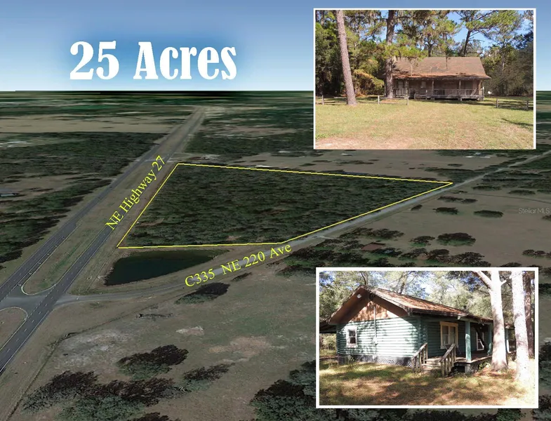EXCLUSIVE OPPORTUNITY! 25+ ACRE OASIS with 2 LOG HOMES in Williston, Florida! Embrace the potential of this extraordinary property just south of Williston on Highway 27. A perfect blend of business and residential, this expansive estate boasts a total of 5 acres with a 2-story log home featuring highway frontage and zoned C-4 Commercial. The main log home, spanning over 1,700 sq. ft., offers 3 bedrooms (2 downstairs) and 3 baths (2 downstairs). Step into a charming living room with a cozy wood-burning stove, adorned with real wood floors. The rustic elegance continues with a loft area, inviting claw foot tubs in all bathrooms, and full-length covered porches on both the front and back. A second log home, accessible from CR335, presents a delightful retreat with 2 bedrooms and 2 baths. Vaulted ceilings and skylights infuse the interior with natural light, while covered porches on both ends invite relaxation and enjoyment of the serene surroundings. Both homes, in need of repairs, have been vacant for several years, offering a blank canvas for your creative vision to come alive. With over 25 acres of untapped potential, the possibilities for this unique property are limitless. Don't miss this once-in-a-lifetime chance to own a picturesque estate in Williston. Unlock the true value of this hidden gem and bring your dreams to life. Schedule your private tour today!