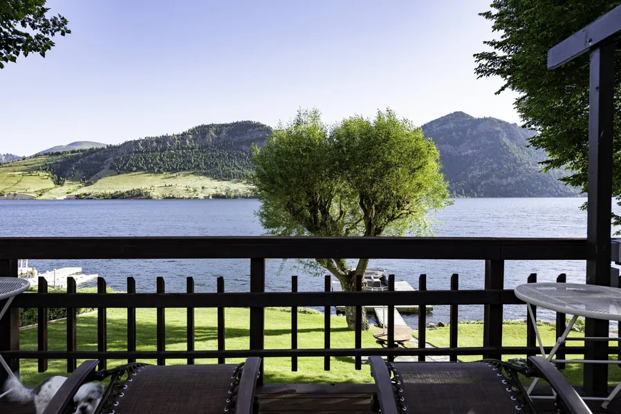 Sun rays are kissing your twinkling toes that are kicked up on your lounge chair. The air is pristine and is filled with aromas of pine. Your sunglasses send the sun beams bouncing back to the sparkling Holter Lake. You take the stairs down to the stone pathway surrounded by lush green grass that then leads to a dock floating on welcoming waters. Swaying gently with the waves and bumping the dock is a 21’ Pontoon boat that comes with the property. As you climb on board, the mountainous scenery takes your breath away. Throttle up and the fresh Montana air is blowing through your hair. This must be too good to be true! A lake utopia, this manufactured home with a metal roof includes the Pontoon boat and several appliances as well. You will feel like you hit the jack pot when you see the clean, well-taken care of home and then step out to the expansive back porch that opens up to the emeral...