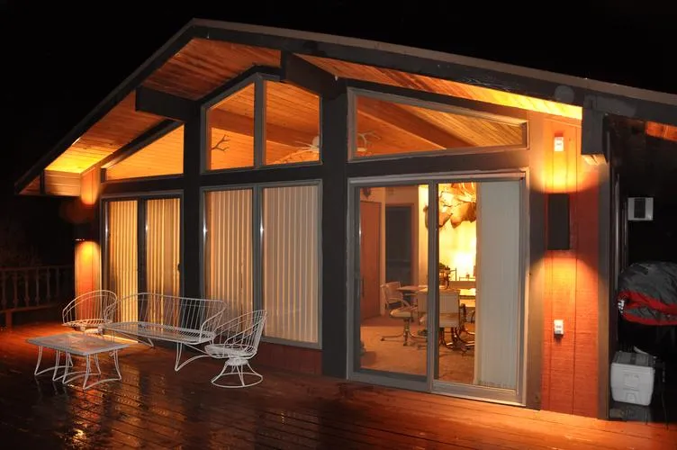 The cabin, built in 1988, has one bedroom, bathroom, kitchen, living and dining room. There are vaulted ceilings with floor to ceiling windows providing an eastern exposure to view amazing sunrises in the early mornings. Once the sun passes in the afternoon, the decks become shaded for comfort into the cool breezy evenings. There is wall to wall carpet in the bedroom, living room and dining room with tongue-and-groove blue pine on the north wall, as well as in the kitchen and on the ceiling.