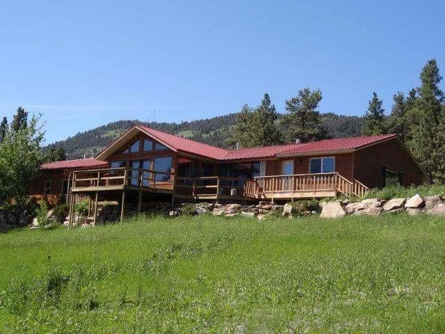 Fly fishing lodge at Wolf Creek! This 4000 square foot lodge is new and updated. Superior location just 1.5 miles west of Wolf Creek. Teh main lodge is nearly 3000 square feet and features 2 large bedrooms with common conversation/living room, game room and pool table, huge kitchen, and first class conference/meeting room. Across an attached breezeway is a 4-plex of newly constructed completed private lodging rooms - each with their own sitting area, bed, and bath. Outside is a large deck with scenic views of this 20 acres, craggy mountains as well as the rambling sound of Wolf Creek flowing below. This is a unique opportunity to operate an outfitting/guiding business, bed and breakfast or fishing lodge partnership located only minutes away from the famous world class fishing on the Missouri River, Dearborn River and Holter Lake.