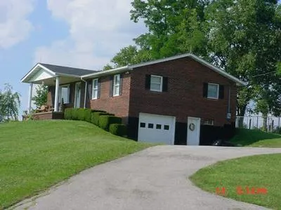 2 +/- acres, 1 story home (28x42), brick siding, shingle roof, 3 bedrooms, 1 1/2 baths, electric ceiling heat & electric heat pump, gas log insert in fireplace, central AC, city water, septic system, full unfinished block basement with 2-car garage, 11x15 office on back of house, beautiful location, mature landscaping,close to town but private. Contact Michele 606-782-0488.
