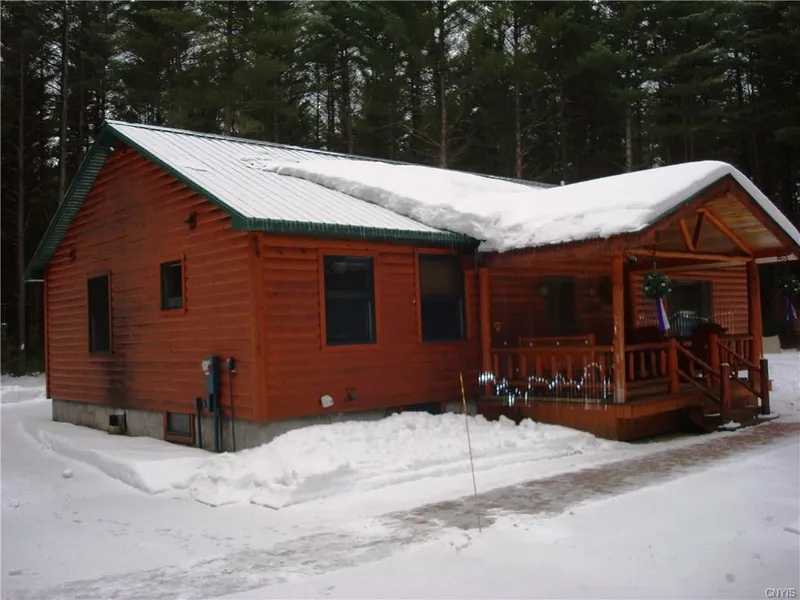 Secluded Log Cabin sits in a beautiful setting with 25 acres that offers lots of privacy. Are you ready to start the New Year with a simple life? This 3 bedroom ranch has been well cared for and is perfect for anyone that likes comfort & low maintenance, only took $600 this year to have heat and hot water from efficient boiler / radiant heat that you will love. As you enter the front door off the open porch you have tile entryway, living room, new appliances and beautiful hickory cabinets in spacious kitchen an dining room area. Back door leads to deck area where you can watch some wild life come in your back yard. 3rd bedroom and family room in basement makes it great for company that stars over. Large 2 car heated garage & workshop above. Snowmobile trails next door, what more could you ask for.